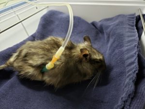 入院中に後ろ足の骨(脛骨)から点滴をしているデグーさんです。