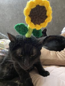冬の新作ニット帽 お知らせ, 未分類 2021年11月13日 猫のいちごちゃんに新作のニット帽(ハットタイプ)ができたと飼い主さんから写真が届きましたので、許可を得て以前の作品とともに掲載しまーす。 できがよすぎます。個人的にはヒマワリが一番好きです。