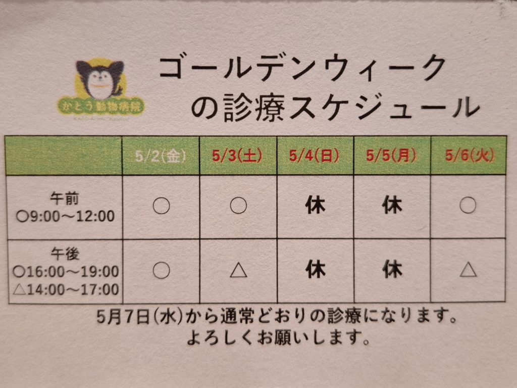 5月5日(月)が休診日になっておりますのでご注意ください。